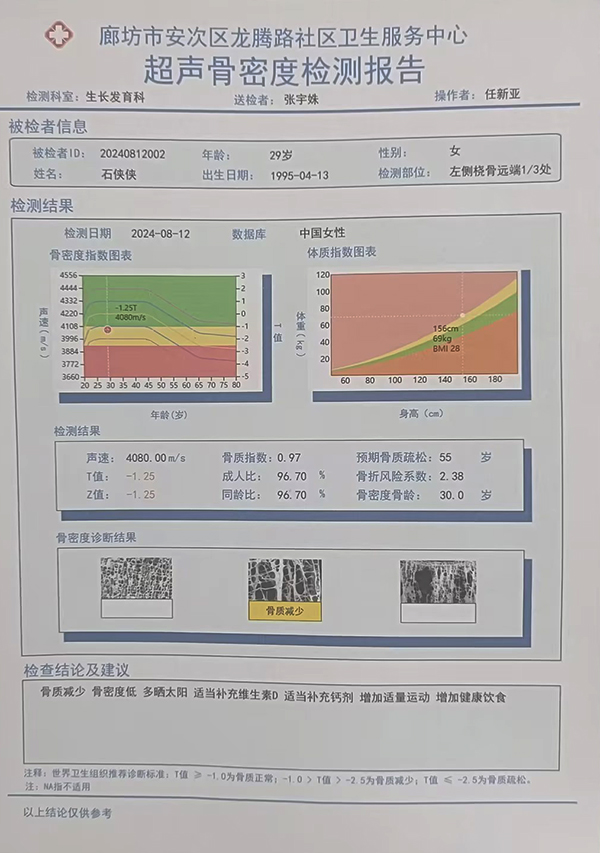 骨密度是骨質(zhì)量的一個(gè)重要標(biāo)志,是反映骨質(zhì)疏松程度、預(yù)測骨折危險(xiǎn)性的重要依據(jù)。BMD-A1超聲骨密度儀廣泛應(yīng)用于兒科、婦產(chǎn)科、骨科等多個(gè)科室,能夠綜合評(píng)價(jià)骨骼的骨密度、骨齡、硬度、韌性等關(guān)鍵指標(biāo),為醫(yī)生提供科學(xué)的診斷依據(jù)。該設(shè)備適用于全年齡段人群,特別是兒童、孕婦及老年人,幫助他們及時(shí)了解自身骨骼健康狀況,有效預(yù)防骨質(zhì)疏松等骨骼疾病的發(fā)生。