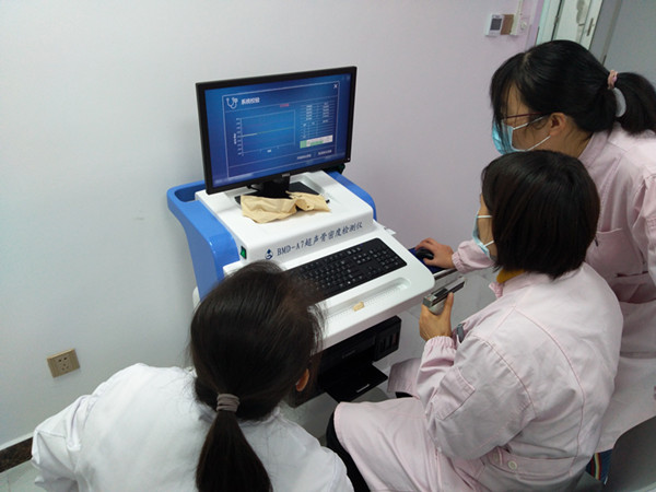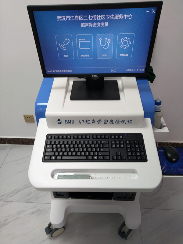 武漢市江岸區二七街社區衛生服務中心采購品源高端推車式骨密度檢測儀,安裝培訓完畢并投入使用!